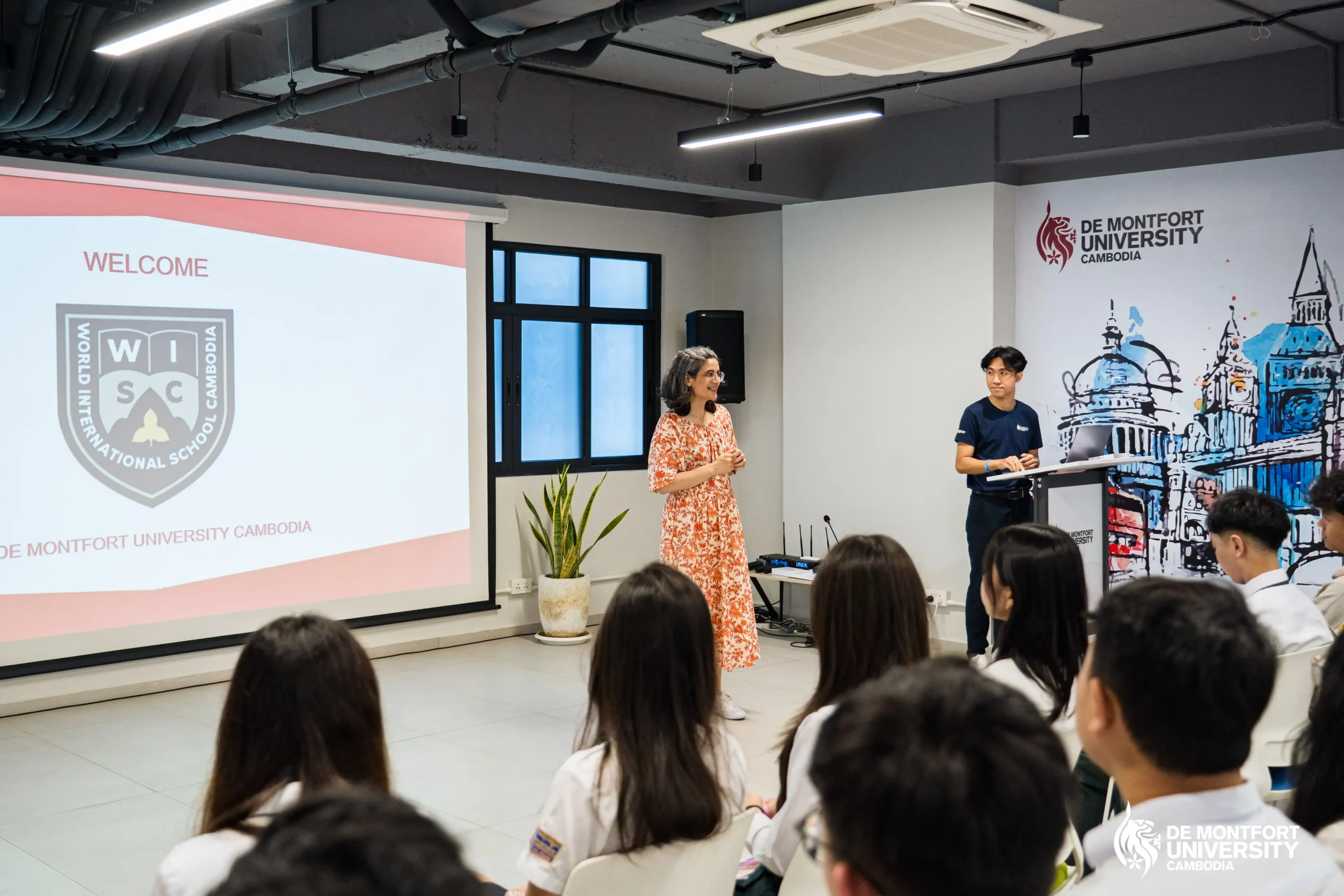 Students from World International School Cambodia (WISC) recently visited De Montfort University Cambodia (DMUC) for an engaging on-campus experience designed to introduce them to UK higher education opportunities in Cambodia. As a leading international school, WISC is committed to providing globally aligned education pathways, making this visit a valuable step in their academic journey.